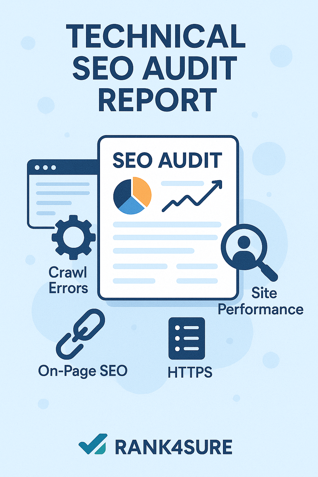 Rank4Sure’s Technical SEO Audit Report service provides a comprehensive analysis of your website’s backend structure to identify and resolve technical issues affecting search engine rankings. Our audit covers crawl errors, site performance, HTTPS security checks, on-page SEO elements, and overall site health to ensure